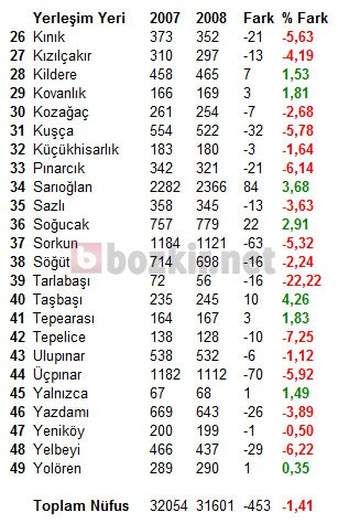 Bozkır merkez , kasaba ve köylerinin nüfus bilgileri ve değişim miktarları